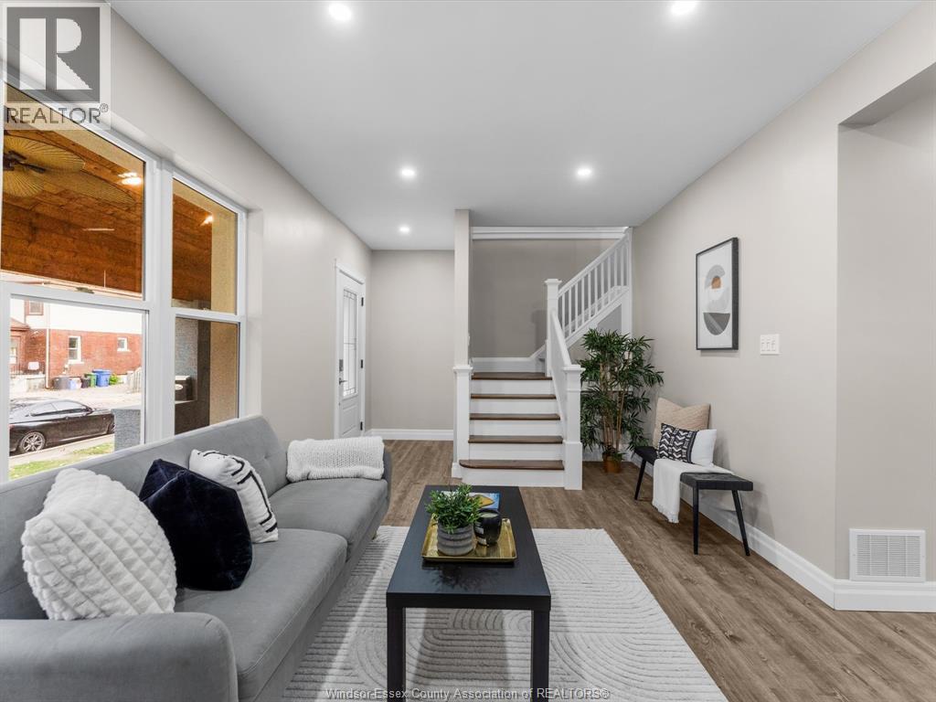 Welcome to 425 Hanna St West – a fully renovated 1¾-storey home in a prime central location close to downtown, border crossings, and major highways. The bright, open-concept main floor features a seamless flow between the kitchen, living room, and dining area and is perfect for entertaining or relaxing with family. Enjoy new vinyl flooring throughout, fresh paint, new appliances, and an elegant electric fireplace that adds warmth and style. A beautiful cedar-clad covered porch extends the living space outdoors, providing the perfect spot to unwind and enjoy your surroundings. Upstairs offers two bedrooms (easily could be converted to 3), including an oversized primary bedroom with a spacious walk-in closet and a beautifully updated full bathroom with ceramic tile. No detail was overlooked, with updates including new windows and exterior stucco (2024), roof and furnace (2018), A/C (2021), full home and garage insulation to near R40 value (2023), and a new concrete side driveway and garage pad (2025). Soffit lighting surrounds the exterior, creating stunning curb appeal. The detached 2.5-car garage with a concrete floor provides excellent space for hobbyists, storage, and parking. A truly move-in-ready home that combines modern comfort, quality craftsmanship, and unbeatable convenience. (id:4555)